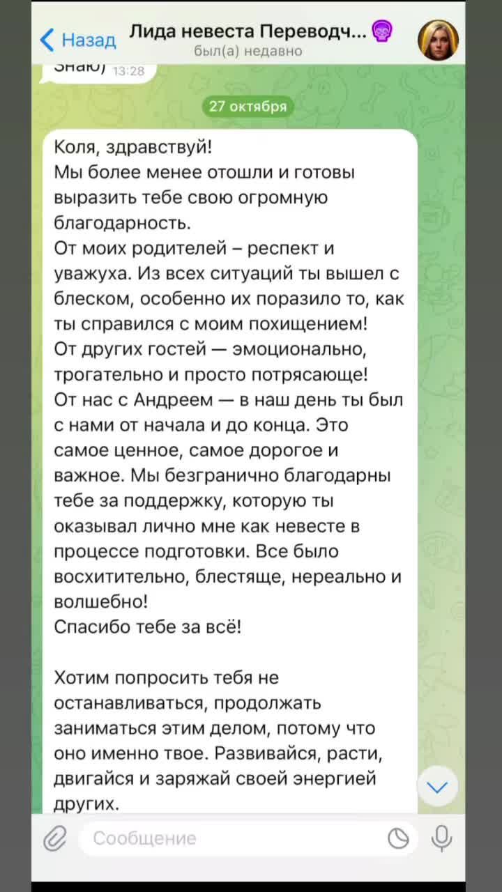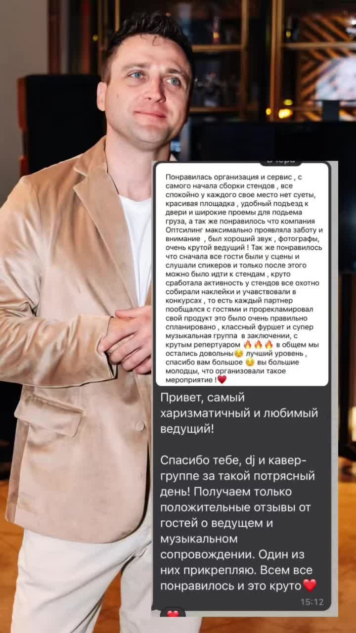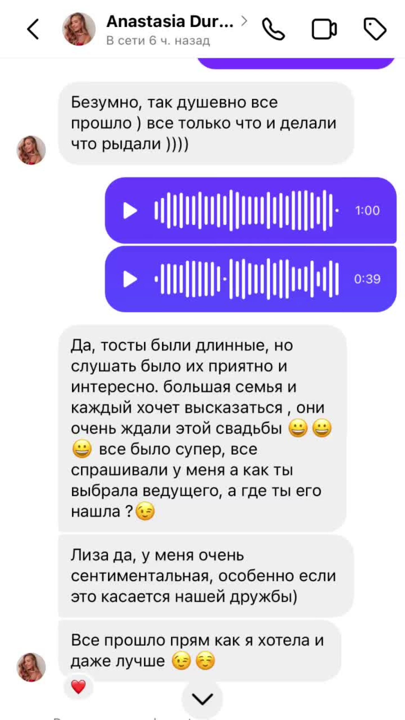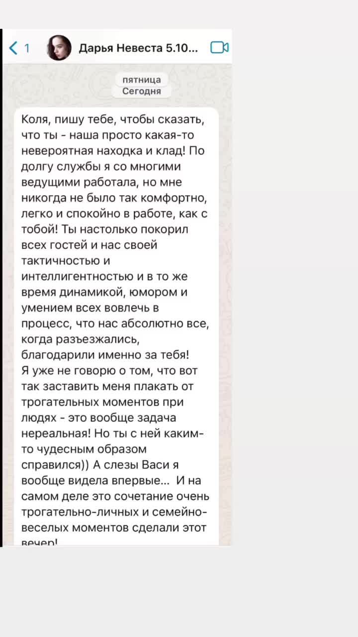Моя главная цель — сделать вас счастливыми! Креативный подход в подготовке программы и импровизация в общении с гостями неотъемлемая часть в моей работе!
