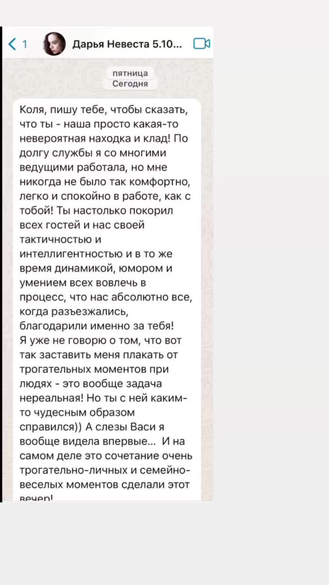 Моя главная цель — сделать вас счастливыми! Креативный подход в подготовке программы и импровизация в общении с гостями неотъемлемая часть в моей работе!